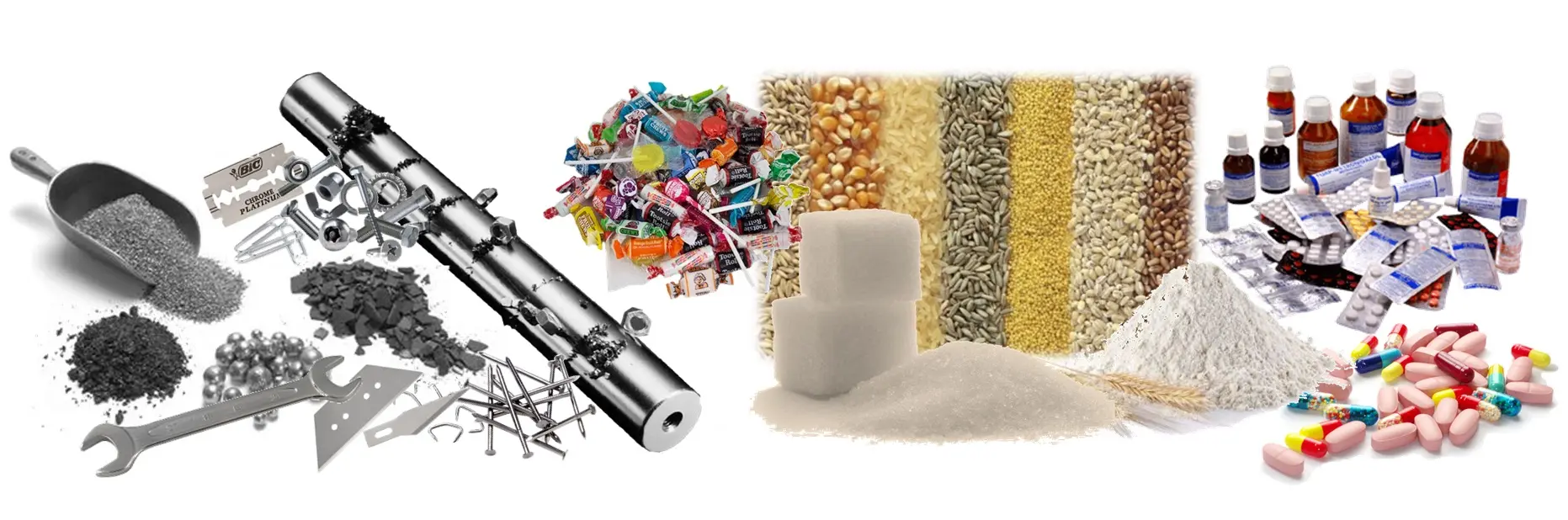 Los separadores magnéticos son equipos especialmente diseñados para separar partículas indeseadas de naturaleza férrica de los productos alimenticios, farmacéuticos y de otra índole que se procesan industrialmente. Los separadores magnéticos se utilizan cada vez con mayor frecuencia en los procesos industriales y de producción de alimentos y productos farmacéuticos con el fin de eliminar la contaminación paramagnética y ferrosa. Estos contaminantes pueden ingresar a la línea de producción de distintas maneras: dentro de las materias primas, dentro o adheridos a los materiales de empaque (como grapas, clavos, etc.), o de partes que se desprenden de los equipos de transporte o de producción desgastados o dañados, (tuercas y tornillos, cuchillas, limaduras de hierro, partes de rodamientos, etc.). Estos contaminantes pueden dañar la maquinaria de proceso (filtros, molinos, balanzas, equipo de medición, etc.) y también pueden quedarse dentro del producto final afectando la calidad. Ofrecemos una amplia gama de separadores magnéticos, adecuados para las diferentes aplicaciones industriales y de proceso, con operación manual o automáticos. Todas las superficies de contacto de nuestros equipos están fabricados con acero inoxidable sanitario grado 316L.